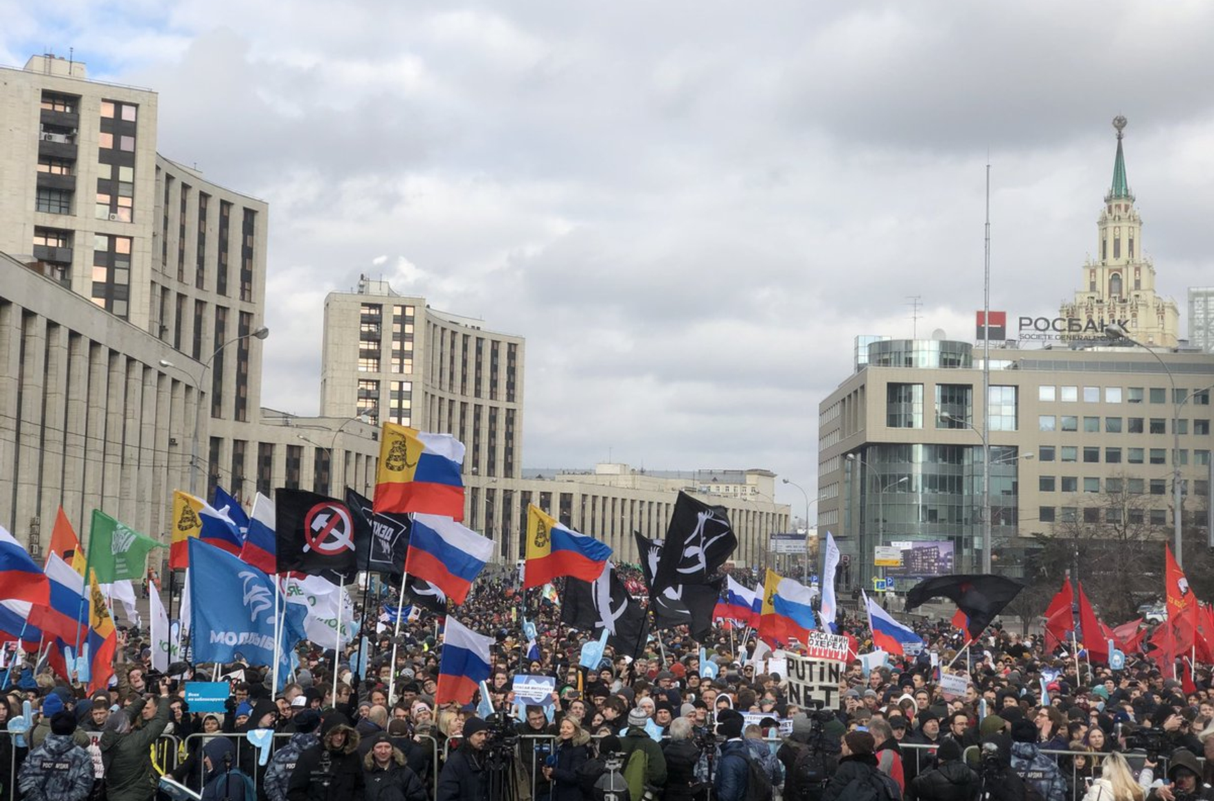 «Съемочную группу телеканала RT и агентства Ruptly не пустили на митинг в поддержку свободы слова в Рунете, который прошел на проспекте Академика Сахарова в Москве. Представитель организаторов акции — Либертарианской партии — заявила журналистам RT, что они работают в “неподходящем” СМИ и будут допущены в пресс-зону, только если уволятся из компании».