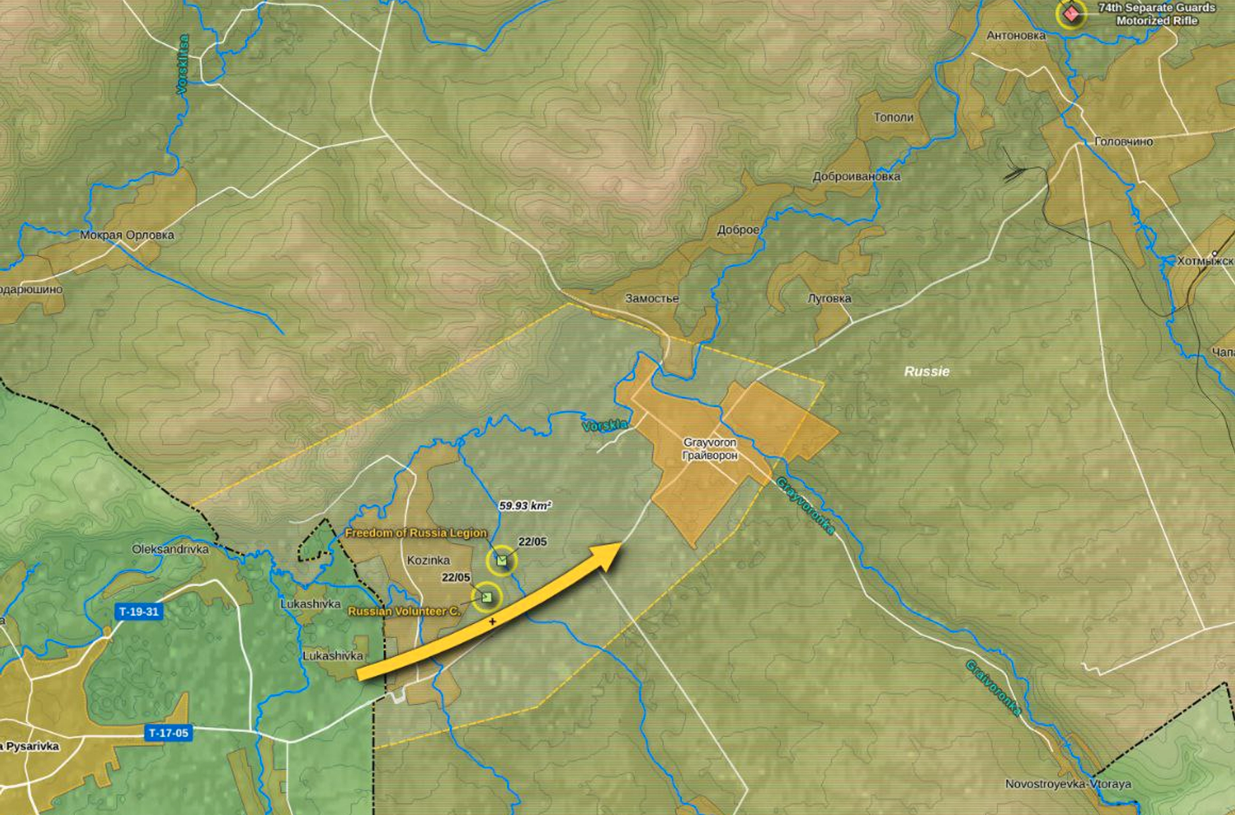 Russian sources claimed that the group then captured the settlements of Glotovo and Gora-Podol (3 km and 5 km from the border respectively), but ISW analysts found no geolocated confirmation that the RDK or LSR had actually reached these settlements.