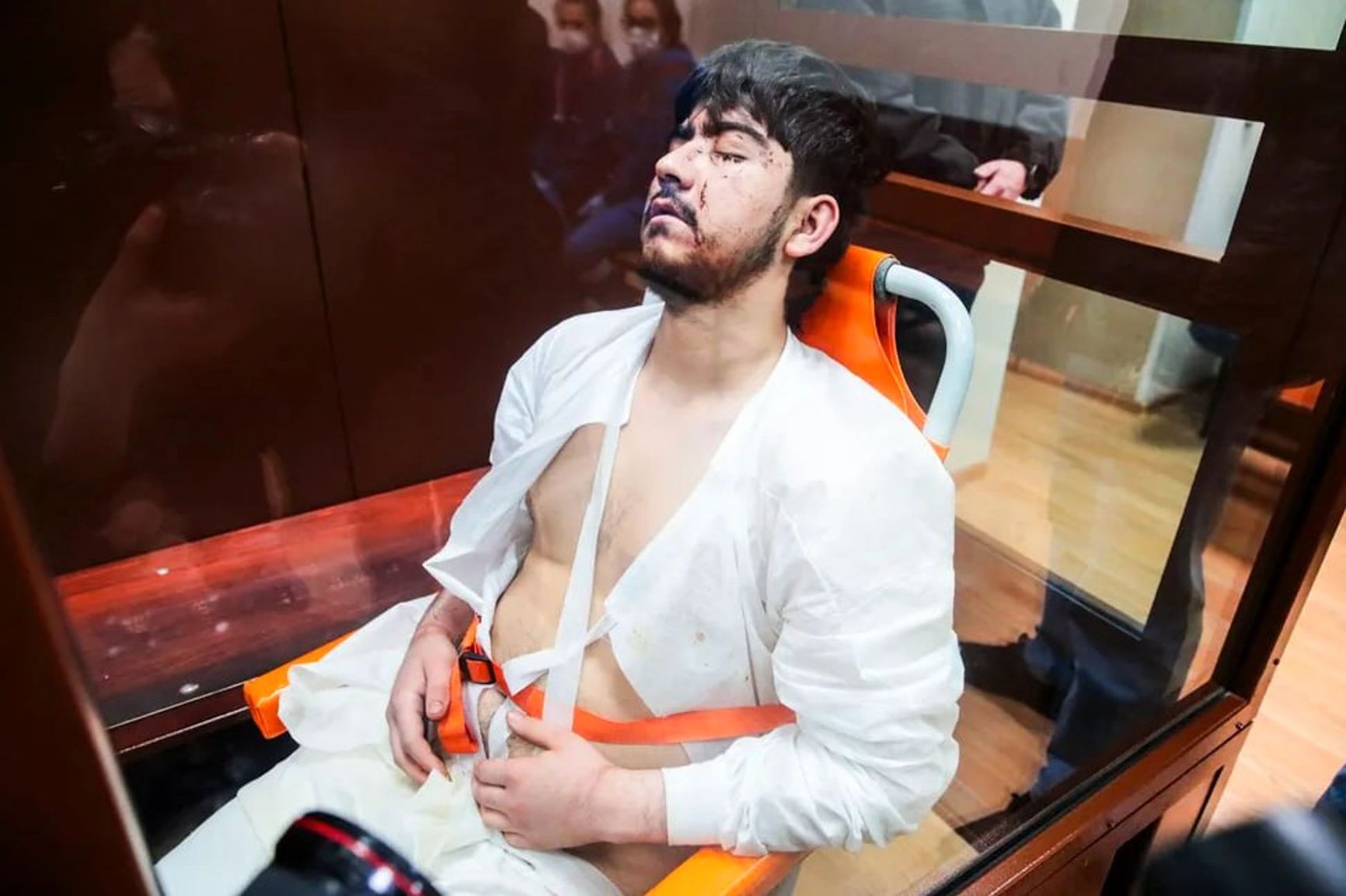 The fourth defendant, Muhammadsobir Fayzov, was carried into the courtroom on a stair stretcher. He had previously been interrogated in an intensive care unit. During the hearing, he appeared unconscious and did not respond in any way to the proceedings. Fayzov is single and has no children. He completed his secondary education and was registered in Ivanovo, where he also worked in a barbershop.