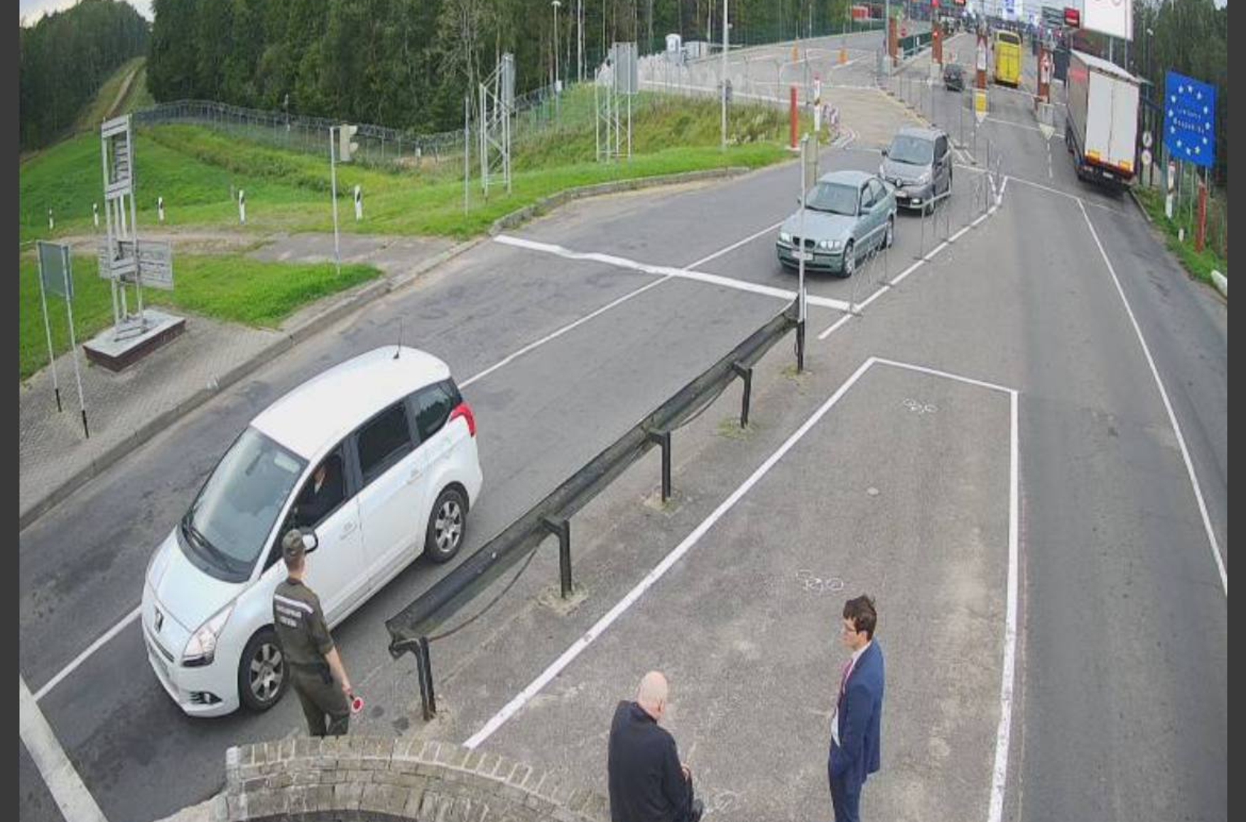 CCTV footage from the neutral zone on the Belarus-Lithuania border shows veteran dissident Mikola Statkevich, sentenced to 14 years in prison in 2021, refusing to leave the country and make his way into Lithuania after his release. Image: Nasha Niva (@nashaniva / Telegram)