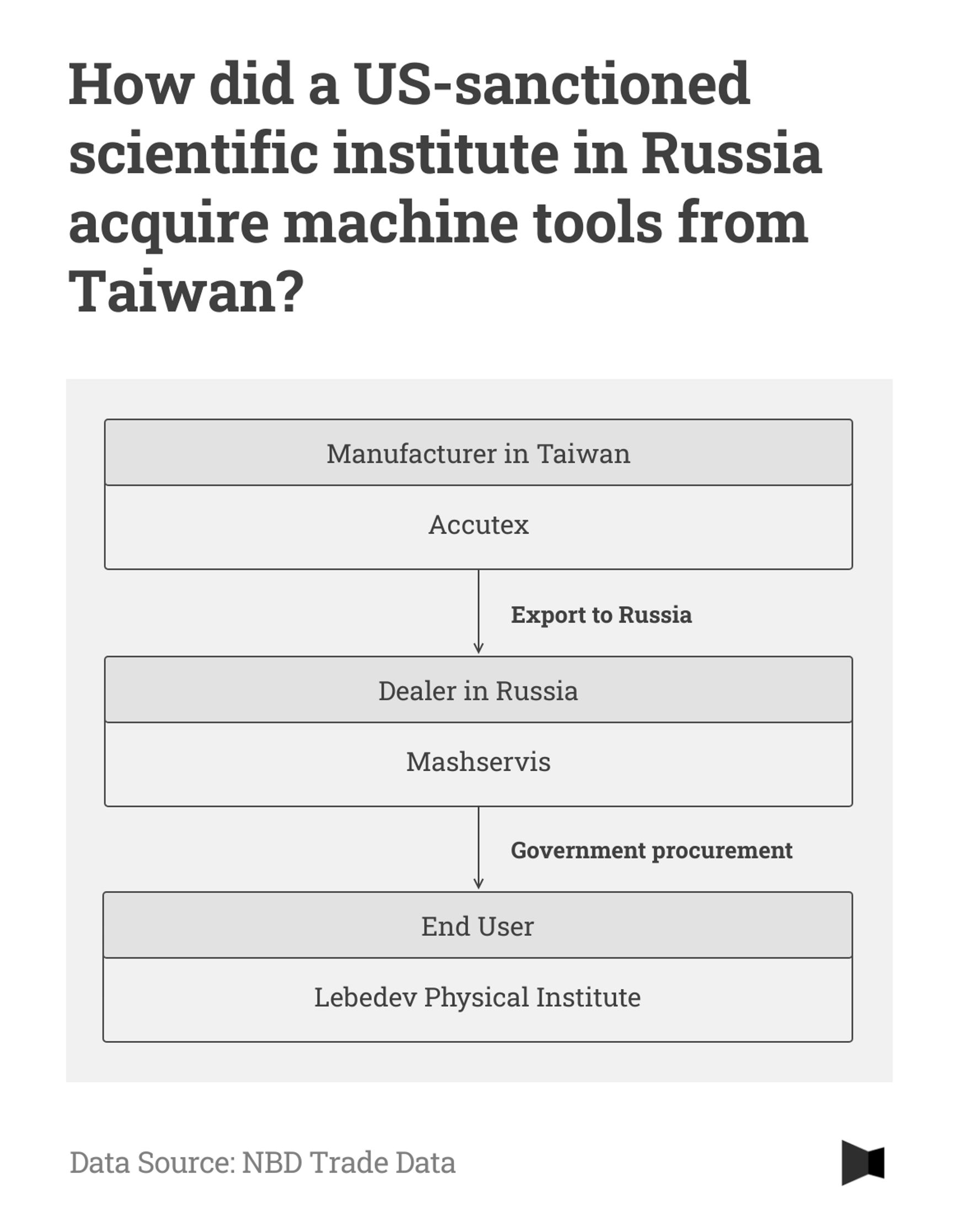 Regarding the procurement of Accutex machines by the sanctioned Lebedev Institute of Physics, Huang said that Accutex was not aware of any transaction involving the Institute. He added that, although Mashservis is indeed a long-term agent of Accutex, the Taiwanese company is not affiliated with Vybor in any way.
