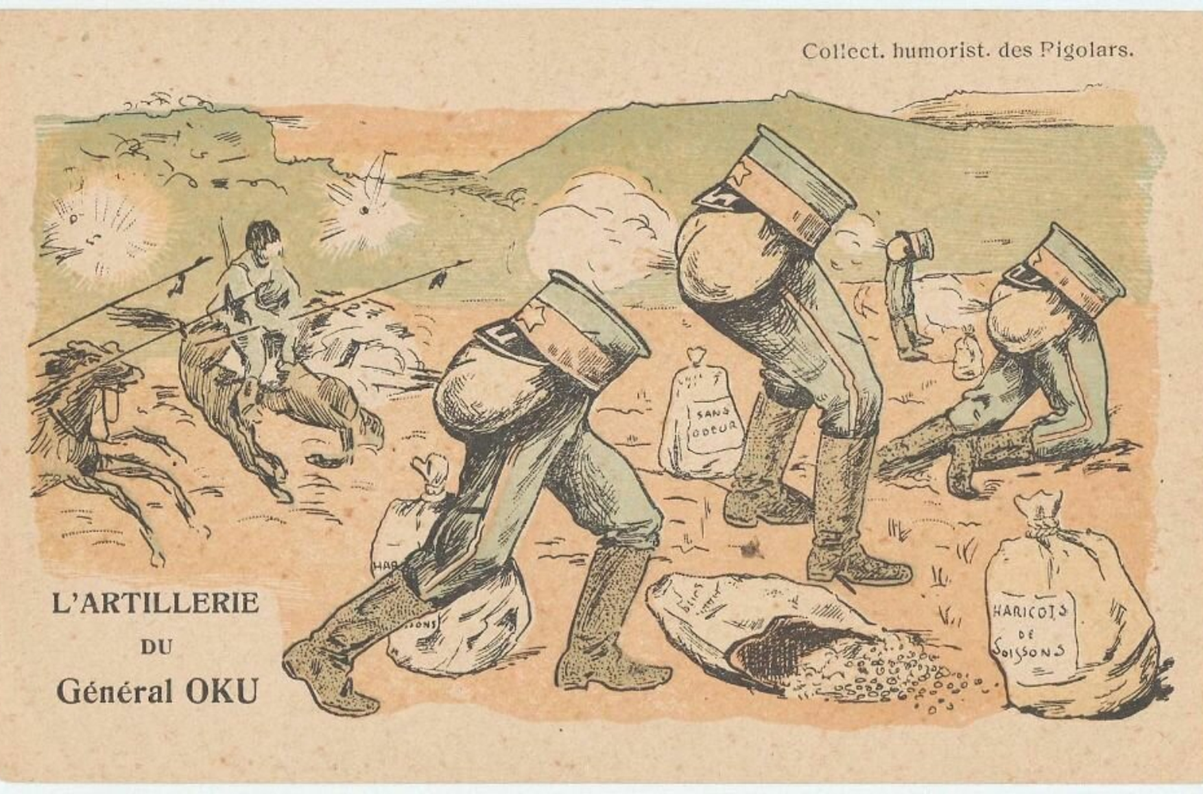Японская пропаганда всячески демонстрировала желание войти в состав цивилизованных народов условной Европы. В официальной печати постоянно подчеркивалось, что «тела убитых русских войнов погребены со всеми почестями» или «японские морские офицеры поздравляют русских морских офицеров с их Новым годом». На внутреннюю пропаганду японцы начали работать еще до войны, побуждая общество к ненависти. Миссионер Николай Японский, основатель Русской церкви в Японии, описывал публикацию 1903 года: «Каждый воскресный номер «Дзидзи Симпоо», газеты серьёзной, вроде нашего «Нового Времени», выходит со страницею карикатур. Сегодня полстраницы занимала следующая карикатура: заглавие «Еку-фукаки яро-но юме» — «сон жадного мазурика», причём «яро» (мазурик, негодяй) изображено знаками: «я» — дикий, «ро» — Россия, значит можно читать «сон жадного русского дикаря»». На картинке дикарь пытался поймать петуха с надписью «Маньчжурия» и запить его мясо водкой «Желтое море». Естественно, дикаря прогонял японский офицер.