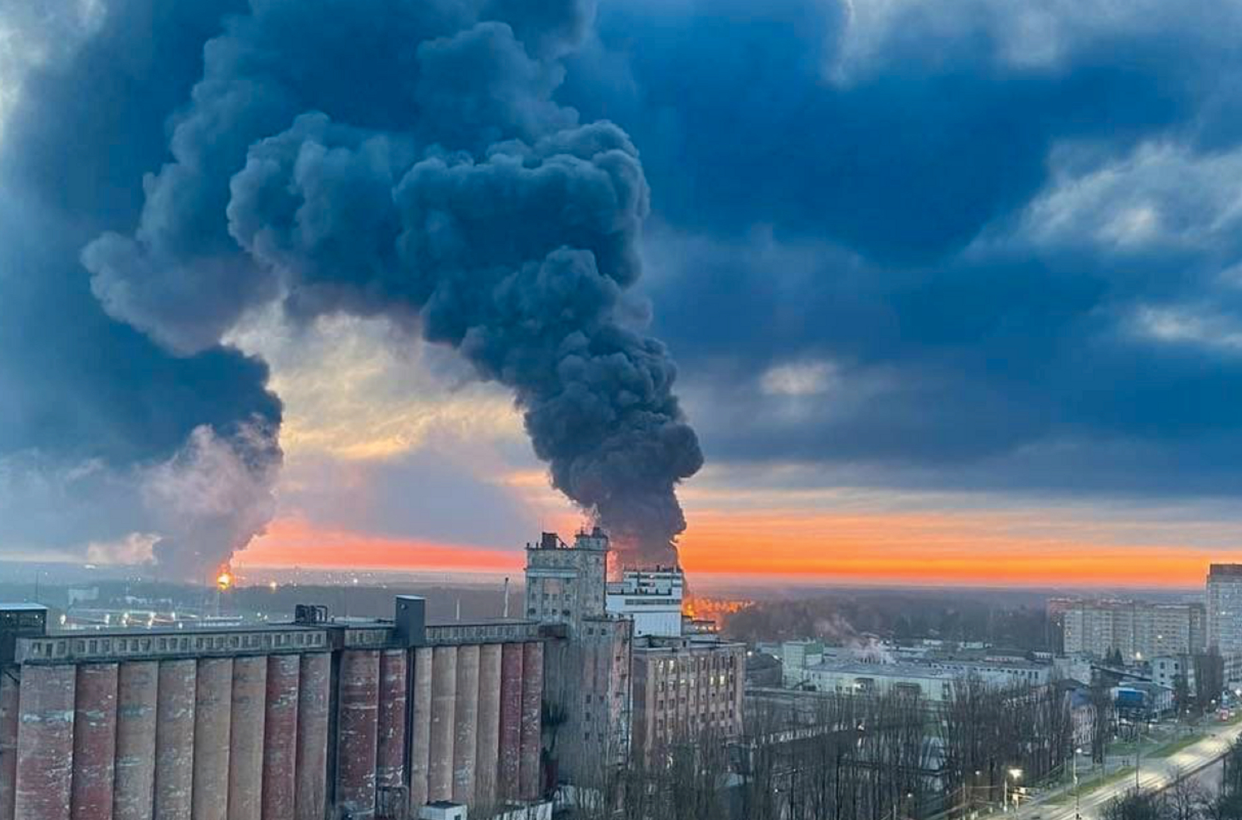 РИА «Новости» пишет, что двое жителей расположенной недалеко от горящей нефтебазы улицы слышали два взрыва. Агентство утверждает, что они отрицательно ответили на вопрос о том, видели ли летающие над нефтебазой вертолеты.