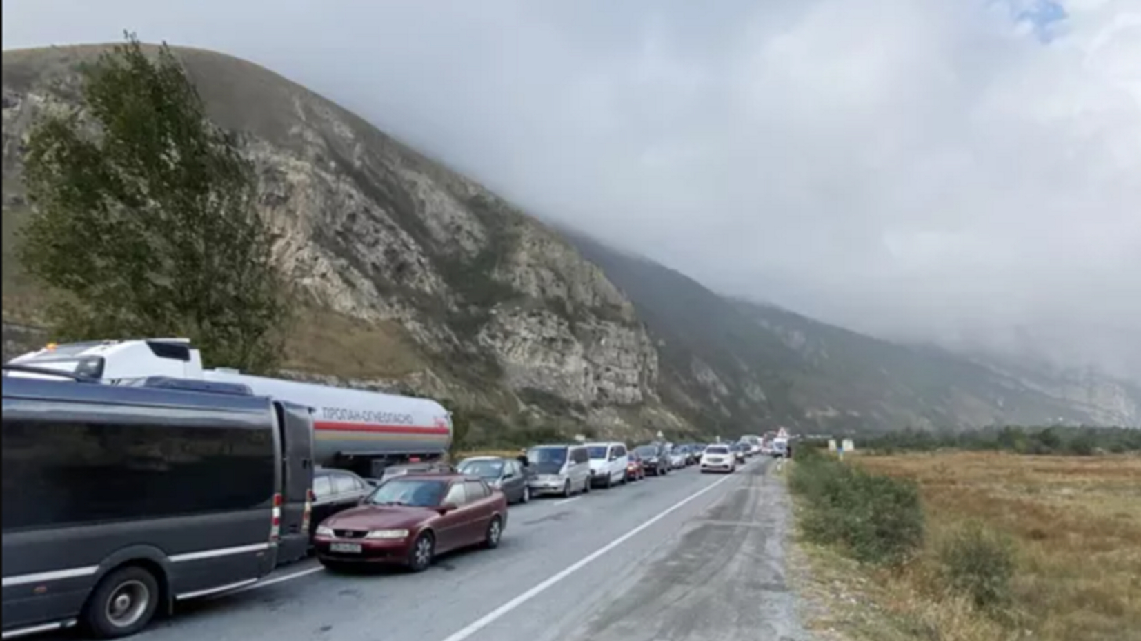 Из-за наплыва желающих выехать в Грузию через пункт пропуска «Верхний Ларс» на дорогах республики образовались многокилометровые очереди из транзитных автомобилей.