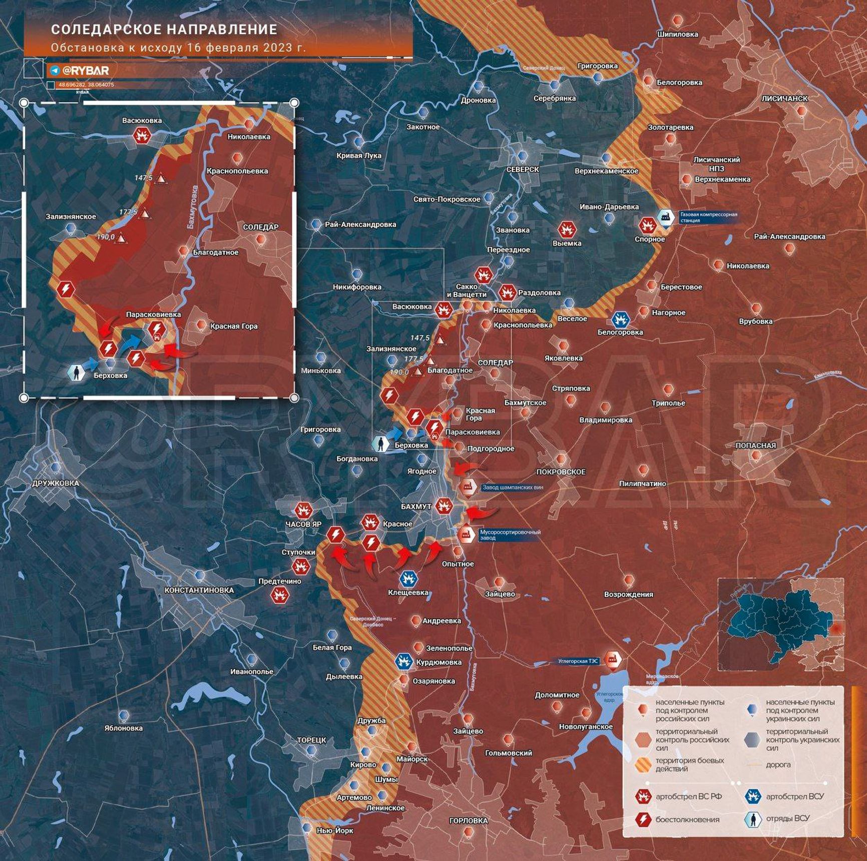 В Бахмуте Донецкой области продолжаются позиционные бои, пишет пророссийский Telegram-канал «Рыбарь». По его данным, к северу от города, в Парасковиевке, штурмовые отряды ЧВК Вагнера ведут бои. Российское наступление на пригород продвигается с трех сторон, наиболее интенсивные столкновения отмечаются на юге. При этом украинские формирования по-прежнему удерживают позиции, борьба идет фактически за каждый дом, признает «Рыбарь».
