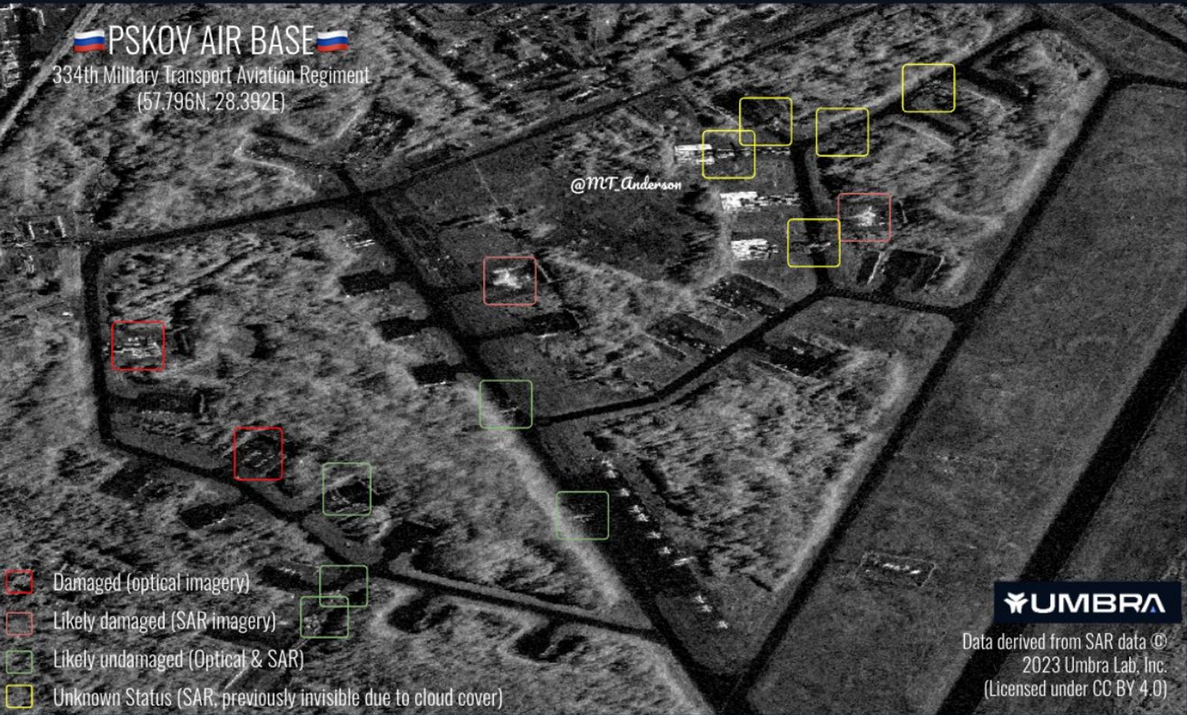 Оптические и радиолокационные изображения также показывают пять не пострадавших в ходе атаки бортов и пять самолетов с пока неясным статусом.
