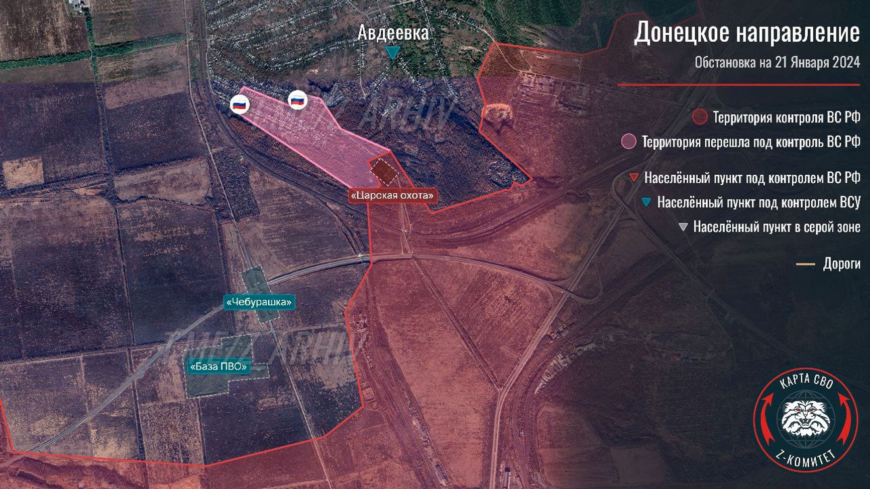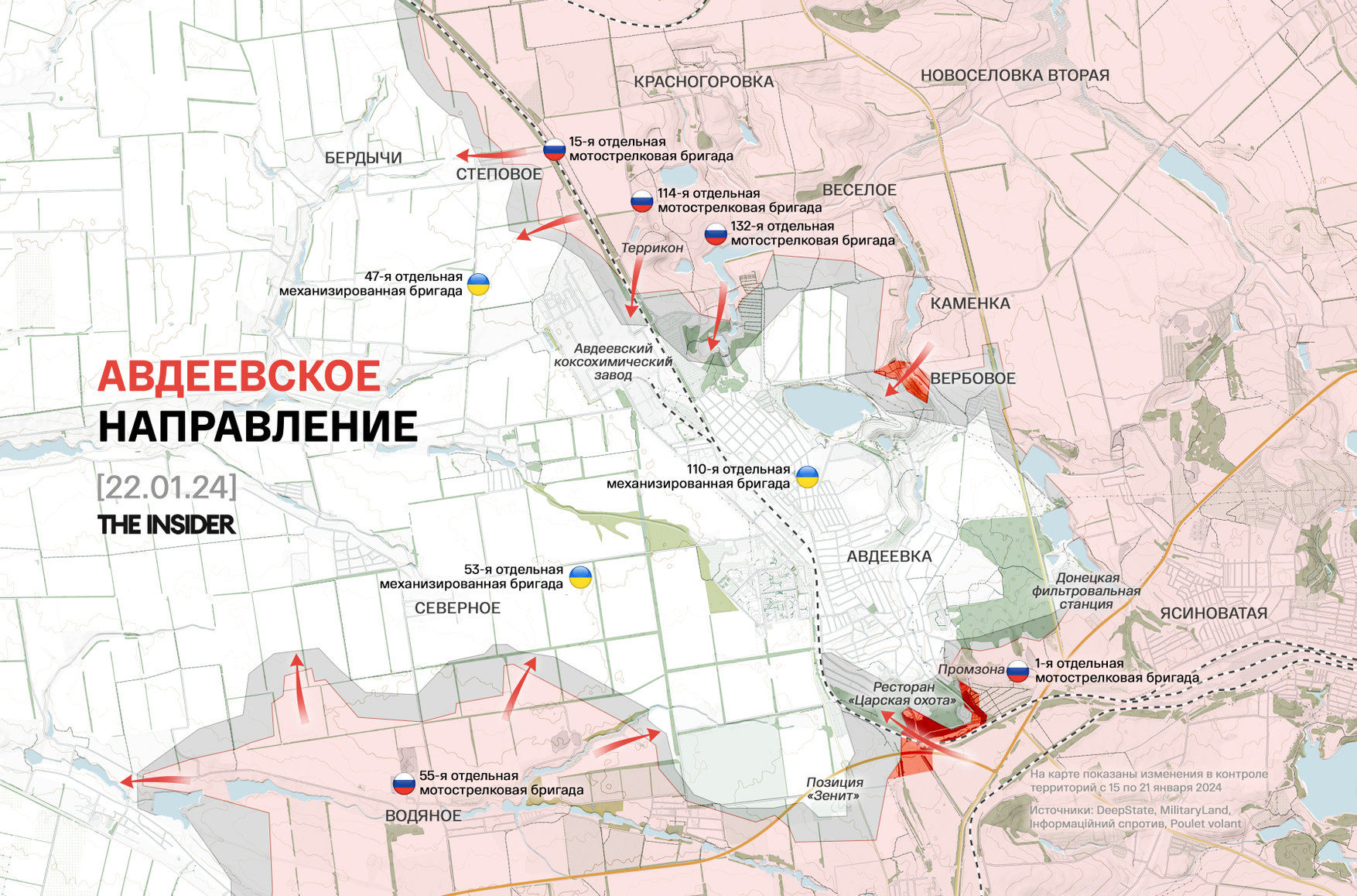На юге Авдеевки ситуация остается, по оценке DeepState, «критической». После захвата превращенного в опорный пункт ресторана «Царская охота» российские силы пытаются закрепиться и продвинуться дальше, что ставит под угрозу всю восточную часть города. Эту информацию подтверждает администратор пророссийского форума Lostarmour под ником Wayne Howell со ссылкой на источники с фронта.