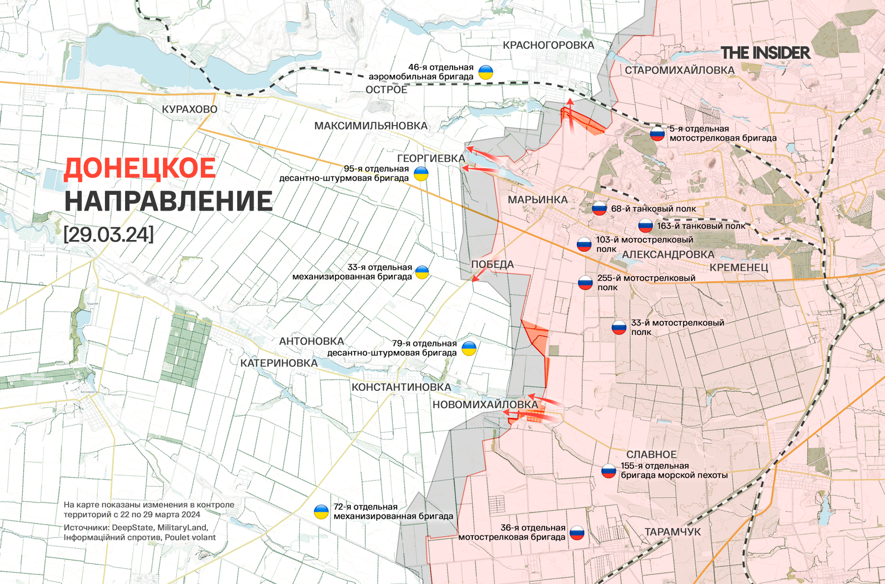 • ISW — с 1 января по 28 марта 2024 года ВС РФ заняли 100 км² украинской территории;