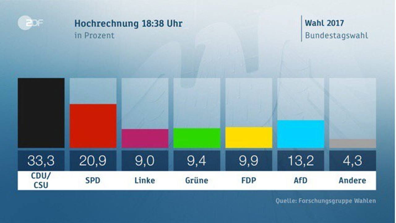 На прошлых выборах в 2013 году ХДС/ХСС набрал 41,5 процента, СДПГ - 25,7 процента.