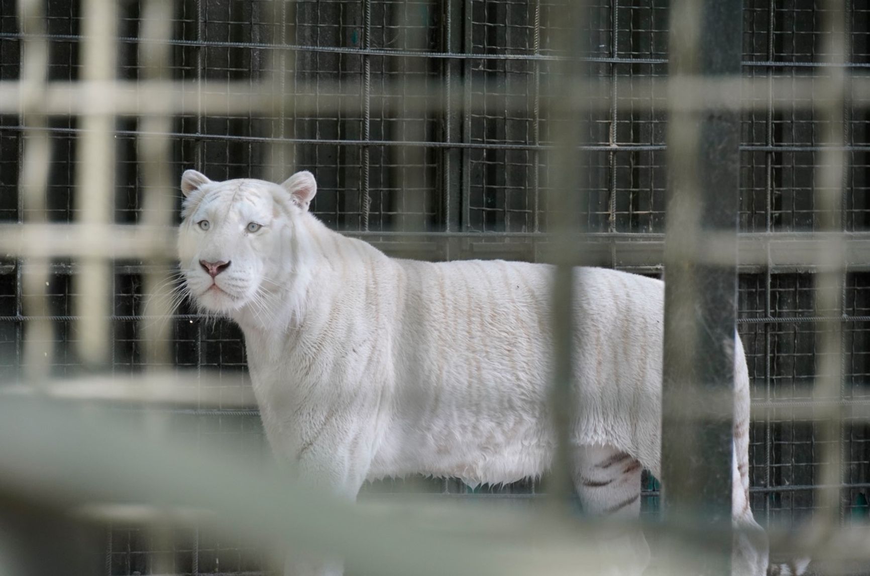 Да и животные, как и говорила няня тигрят, не обращают на них внимания. Лишь белая тигрица — удивительно красивое создание, по какой-то причине отказавшееся кормить своих малышей, — на секунду замирает, когда установленный рядом с вольером динамик начинает завывать, предупреждая о вылете ракет, самолетов или дронов. Стоит несколько мгновений, словно прислушиваясь к сирене, а потом укладывается спать у решетки своего вольера — единственного целого в этой части экопарка.